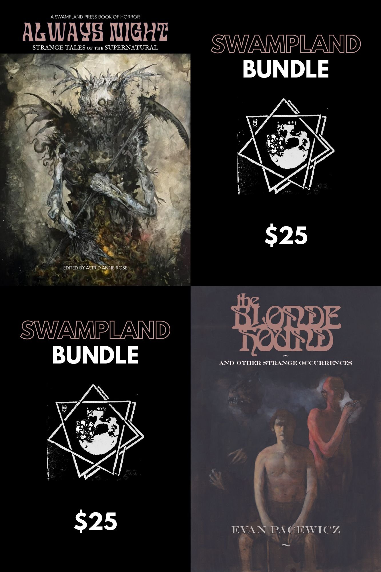 The Blonde Hound and Other Strange Occurrences is a splatterpunk horror noir backed by four additional stories by Evan Pacewicz.